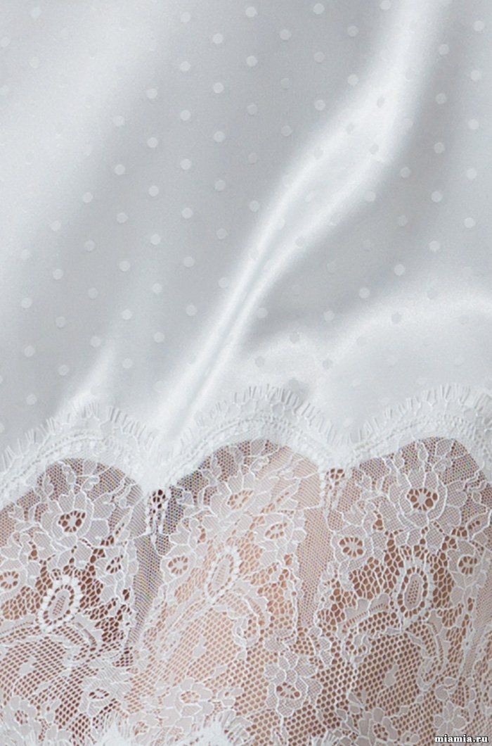 Короткая сорочка Mia-Amore на тонких бретелях выполнена из искусственного шелка с жаккардовой основой. Вставки из ажурного кружева украшают верхнюю часть полочки и спинки. Декор - атласный цветок по центру выреза.
