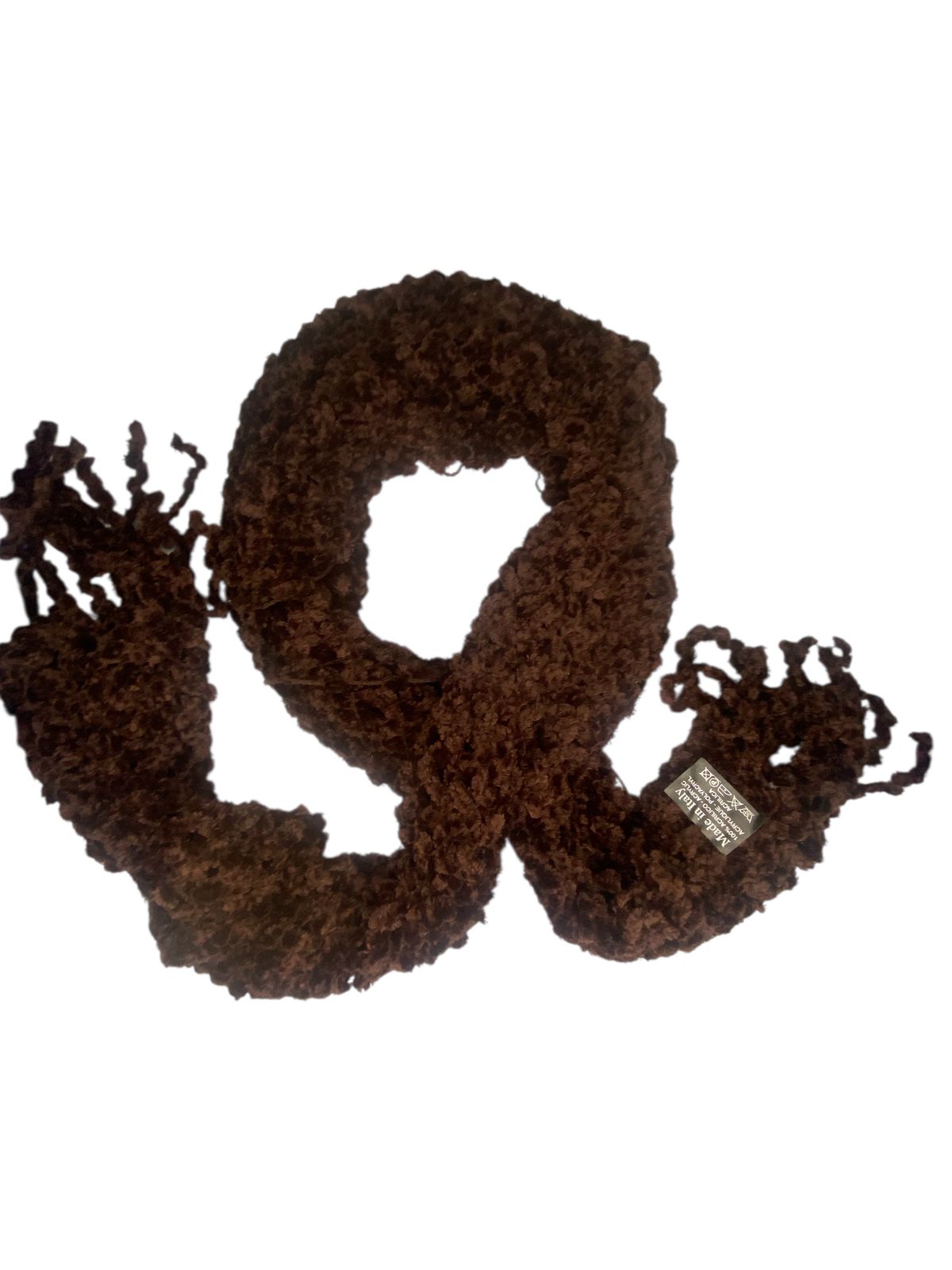 Женский объемный вязанный шарф- базовый элегантный аксессуар. Благодаря лаконичному дизайну, шарф отлично дополнит весенне-осенний и зимний образ с любым стилем одежды. Очень приятный к телу, не вызывает раздражения и зуда на нежной коже шеи. Он в холодную морозную погоду будет оберегать вас. Модное плетение велюровых нитей придает шарфу дополнительную изысканность. Чиниль – это ткань, изготовленная из одноименной пряжи. Название происходит от французского термина «шениль» , и его использование стало широко распространено примерно в 1970-х годах. Вязание подчеркивает бархатный эффект чинили , оставляя видимым ворс , который при плетении сглаживается, можно создавать из разных типов волокон и пряжи: наиболее распространенными являются хлопок, вискоза, акрил, полипропилен, полиэстер и шерсть. В конечном итоге получается эффект бархата , но он гораздо мягче на ощупь и имеет открытую текстуру. Шарф сделан в Италии производитель MARINI SILVANO . Длина шарфа позволяет его завязывать и драпировать разными способами, а также использовать как снуд или головной убор. Размер 160*25 + 15см бахрома