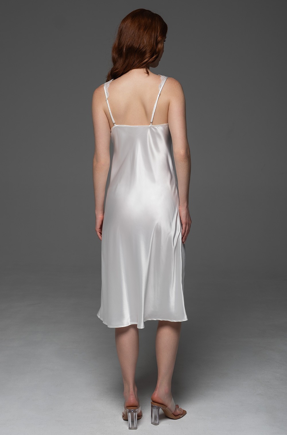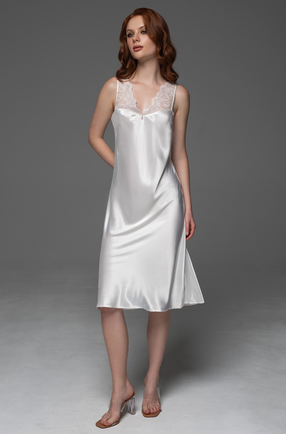 Adelaida 4668Длинная сорочка Mia-Amore выполнена из однотонного смесового шёлка. Бретели сорочки маечного типа, лиф сорочки сверху украшают вставки из изысканного вышитого кружева.