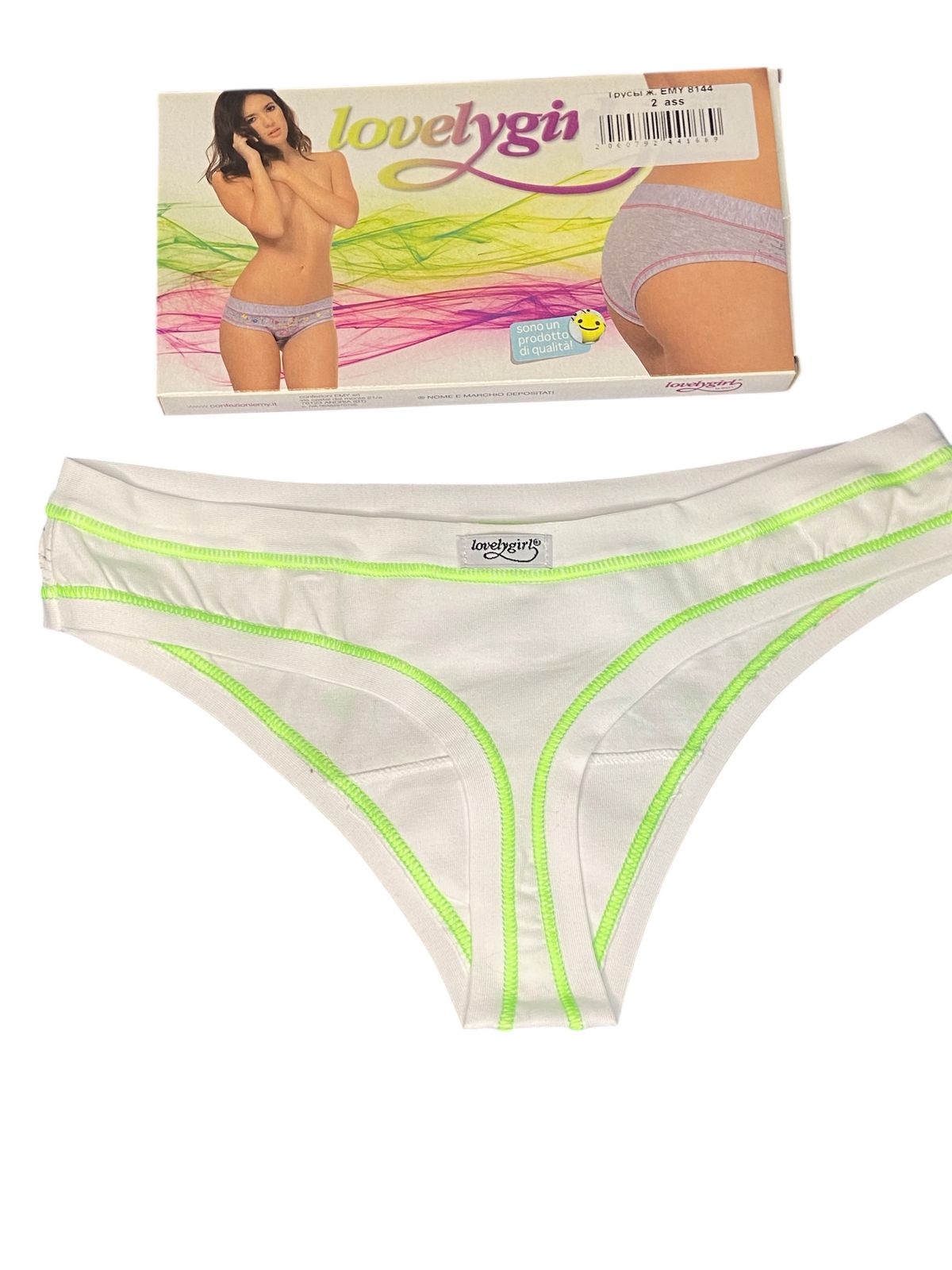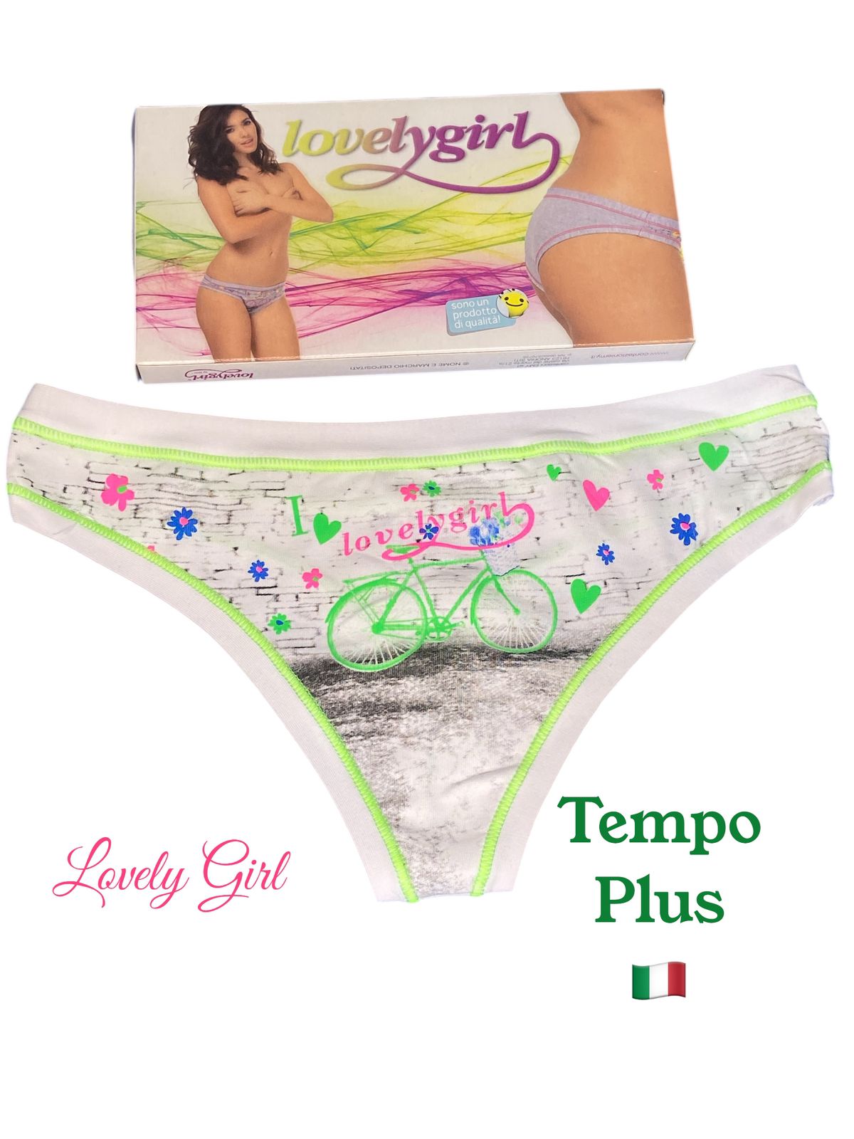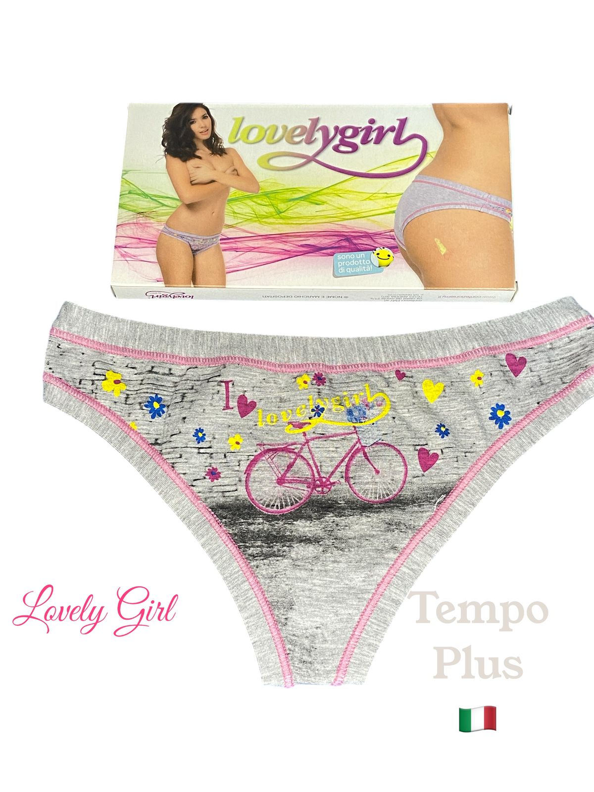 Женские классические трусы стринги отличного качества Итальянского бренда Lovelygirl by EMY. Подходят для повседневного гардероба любого формата. Плотная гладкая ткань из хлопка , отличны как спортивное белье, для активного частого ношения на любой сезон. Подходят для девушек подросткового возраста. ПРИНТ ВЕЛОСИПЕД-МОДНО И КРЕАТИВНО. Изделия полностью произведены в Италии на фабрике Confezioni Emy (см. фото этикетки) Используйте как спортивные на гимнастику, танцы, фитнес, йогу. Все изделия упакованы в стильную фирменную коробку, что станет весомым плюсом при выборе подарка. Важно: изделия, согласно действующему Российскому законодательству (СанПиН) отнесены к невозвратным, внимательно проверяйте размер (при выборе ориентируйтесь на Российский)