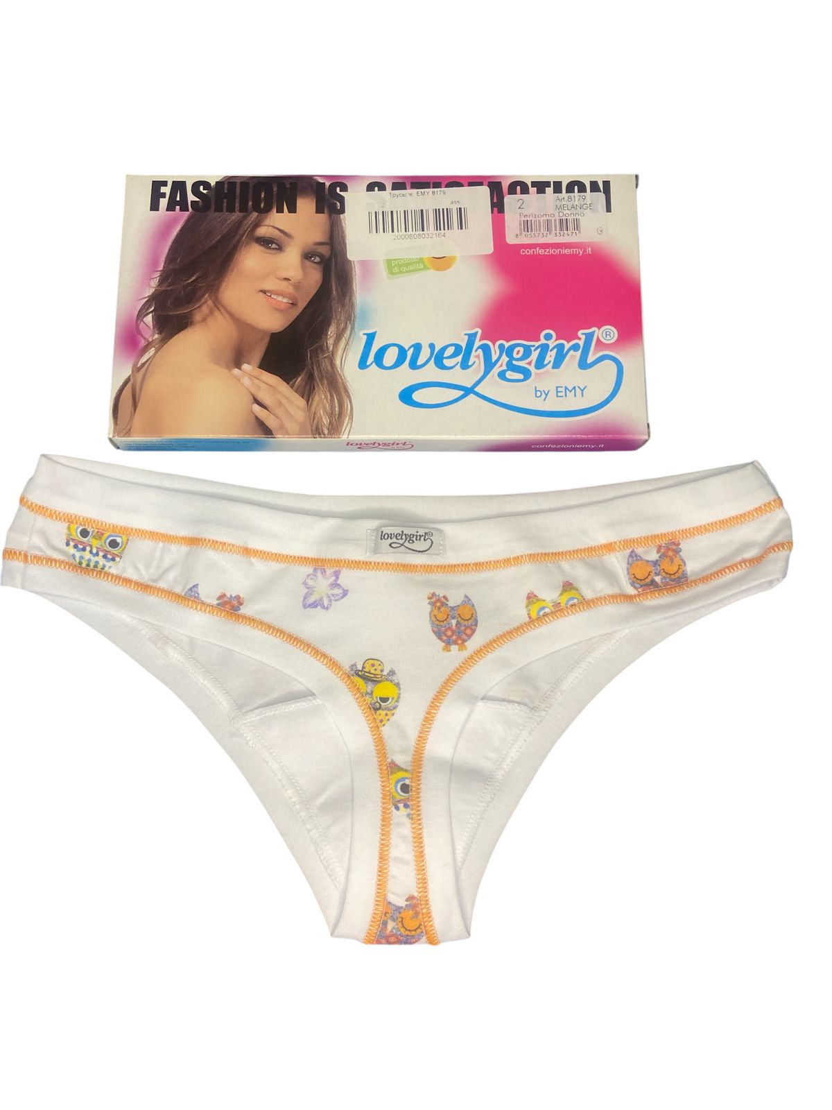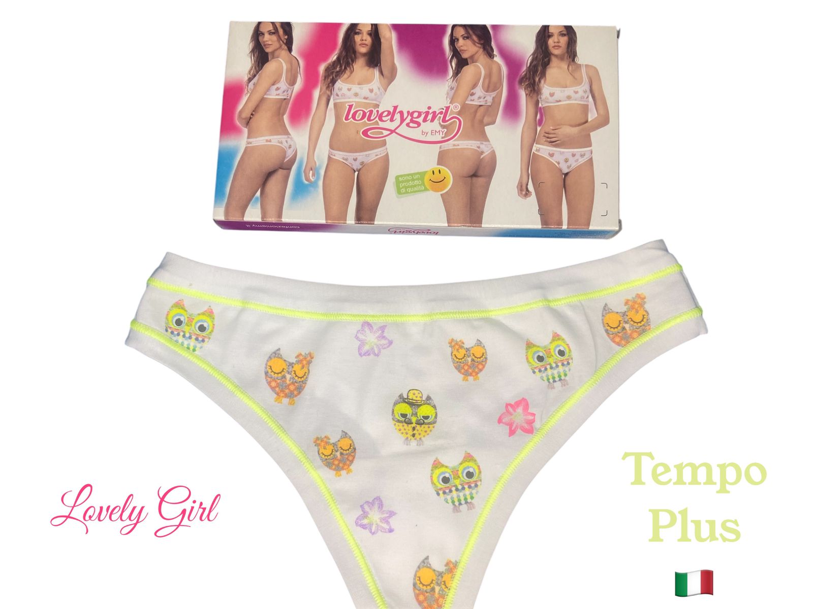 Женские классические трусы стринги отличного качества Итальянского бренда Lovelygirl by EMY. Подходят для повседневного гардероба любого формата. Плотная гладкая ткань из хлопка , отличны как спортивное белье, для активного частого ношения на любой сезон. Подходят для девушек подросткового возраста. Изделия полностью произведены в Италии на фабрике Confezioni Emy (см. фото этикетки) Используйте как спортивные на гимнастику, танцы, фитнес, йогу. Все изделия упакованы в стильную фирменную коробку, что станет весомым плюсом при выборе подарка. Важно: изделия, согласно действующему Российскому законодательству (СанПиН) отнесены к невозвратным, внимательно проверяйте размер (при выборе ориентируйтесь на Российский)