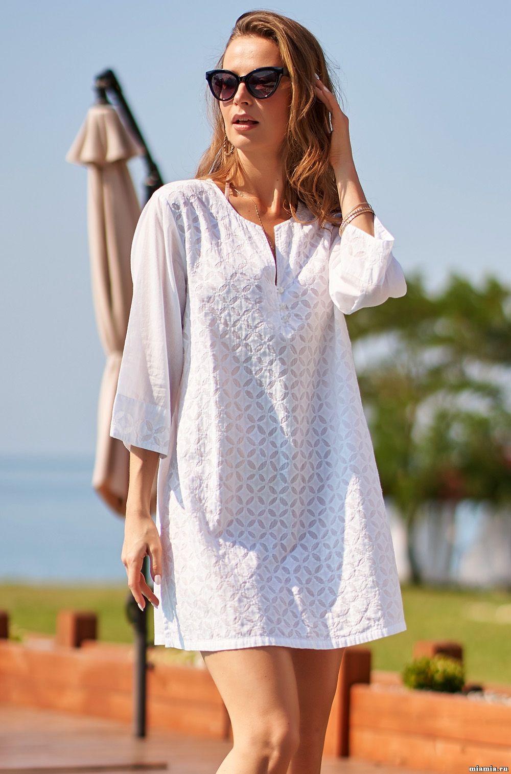 Туника Mia-Amore 1371 ArgentinaТуника Mia-Amore свободного кроя с рукавами 3/4 из хлопкового полотна. Полочка и манжеты рукавов выполнены из полотна с накладной вышивкой.